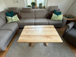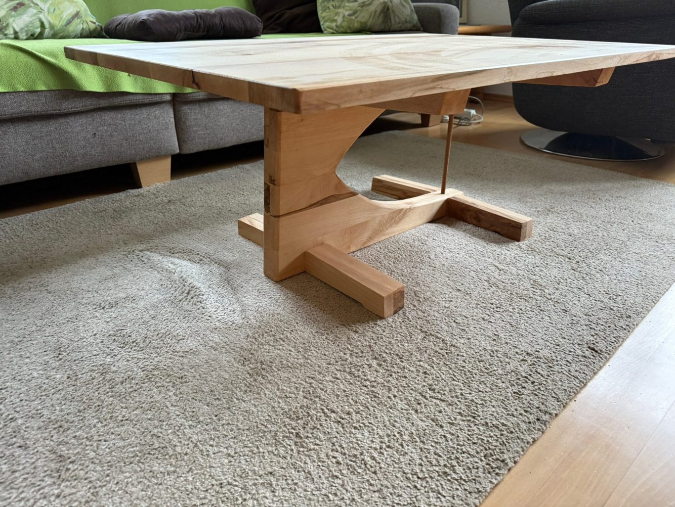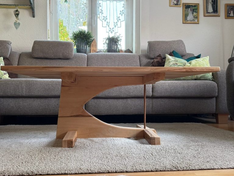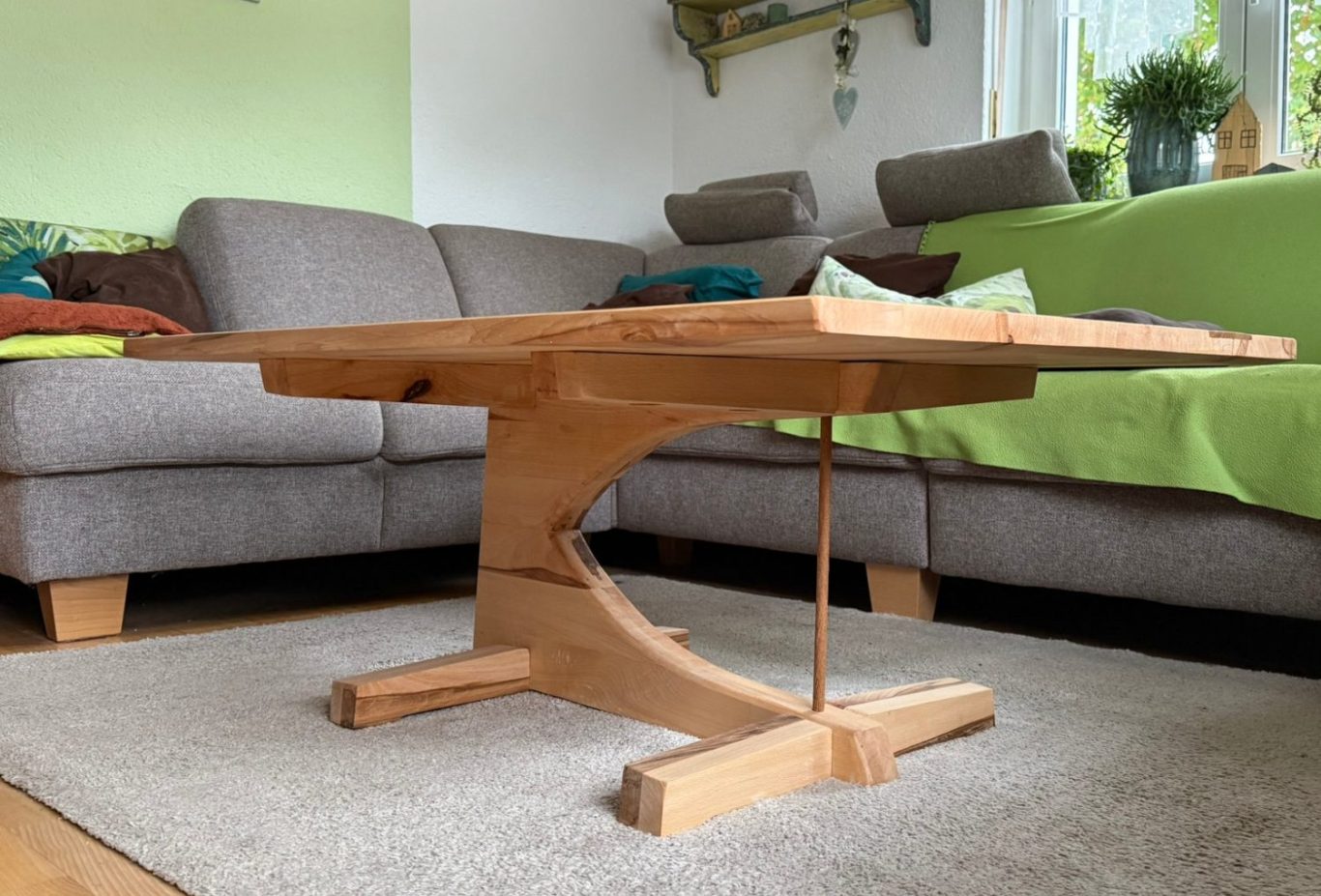 Dieser Couchtisch ist mehr als nur ein Möbelstück – er ist ein handgefertigtes Einzelstück. In traditioneller Schreinerarbeit entsteht aus massivem, PEFC-zertifiziertem Buchenholz ein Tisch, der Nachhaltigkeit mit außergewöhnlichem Design verbindet.